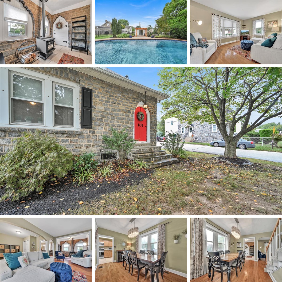 - Charm of the front entryway, including unique front door and window arches.