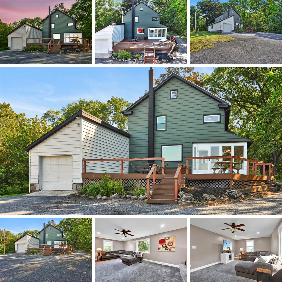 Welcome to this beautifully updated 1900 farmhouse that combines timeless character with modern comfort. Offering 3 bedrooms, 2 full bathrooms, and 2,237 sq. ft. of living space, this 2-story home has been thoughtfully renovated in 2024 and is move-in ready. Situated on a spacious 1.65-acre lot in a peaceful rural setting, the property also includes multiple outbuildings, making it truly one of a kind. Inside, the first floor features an open floor plan with a bright and inviting living room, dining room, and a modern kitchen complete with granite countertops, sleek cabinetry, and brand-new appliances. A large office provides flexibility for remote work or hobbies. A convenient first-floor full bathroom also houses the laundry area, adding everyday functionality. The large sunroom, filled with natural sunlight, is a perfect spot for morning coffee, reading, or enjoying the outdoors with direct access to the expansive deck for entertaining or relaxing. Upstairs, the second floor offers three spacious bedrooms and another full bathroom. Recent updates include new propane forced-air heating with heat pump, central air, insulation, exterior paint, windows, and more—giving you peace of mind and energy efficiency. An attached 1-car garage provides easy access into the home. The property also includes three incredible outbuildings. The classic barn offers two separate bays on the bottom level and large open storage on top—perfect for equipment or storage. The impressive 3-car pole building measures 60x45 and features three 14-foot garage doors along with a car lift—ideal for car enthusiasts, RV or boat storage, or anyone needing oversized workshop space. The recreation building measures 30x40 and is currently used as a recreation space equipped with a wood stove and a large bar—perfect for entertaining, hosting family gatherings, game nights, or even creating a home gym, studio, or hobby space. The versatility of these buildings provides countless opportunities to fit your lifestyle. With its blend of historic charm, modern upgrades, exceptional outbuildings, and peaceful rural setting, this property is truly unique and ready for its next owner to enjoy.