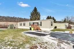 Located near the entrance with a huge yard in the desirable Frieden Manor community, this impeccably maintained two-bedroom, one-and-a-half-bath home offers effortless one-level living with warmth and charm at every turn. From the moment you arrive, the brand-new deck invites you to slow down and enjoy the peaceful surroundings. Inside, the open and airy layout shines with new waterproof luxury vinyl plank flooring, soft modern LED lighting, and a spotless, like-new feel throughout. Large family room with spectacular glass fireplace beckons you to gather and enjoy your day. The kitchen is both beautiful and functional, featuring all new stainless-steel appliances, generous counter space, and abundant cabinetry for easy organization. The spacious primary bedroom provides a true retreat with a large walk-in closet, while the conveniently located washer and dryer in the mudroom add everyday ease. Efficient gas heat and central air keep the home comfortable year-round. Truly move-in ready and lovingly cared for, this home is located in the Blue Mountain School District with motivated sellers ready to welcome its next owner. Monthly lot rent is $717 and includes water and trash, with park approval required.