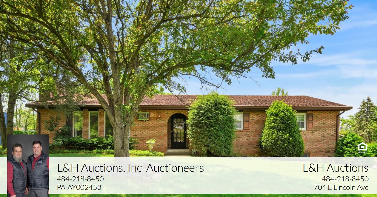 PUBLIC AUCTION Sat. June 14th 2025 9am (Real Estate Offered @ 12 Noon. Myerstown Brick Rancher 4 Bedrooms, 1 ½ Baths, Eat-In Kitchen w/access to Large Deck, Large Living Room w/Brick Fireplace, 1632 Sq Ft Living Area, Lower Level is a Full Basement with Approx. 630 Sq Ft of Finished Area, Lower Level 2 Car Garage, Shed, All on 1.2 Acres, Oil Hot Water Baseboard Heat, On-Site Water & Sewer, ELCO Schools, Jackson Twp. Taxes-$5026 Zoning-Ag