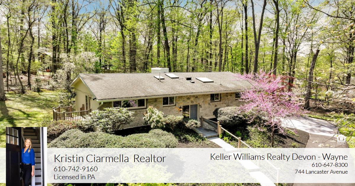 Nestled at the end of a peaceful cul-de-sac in the award-winning T/E School District, 694 Trowill Lane offers a rare blend of privacy, natural beauty, and thoughtful design. Set on a lush, level .93 acre lot, this McElroy-built contemporary raised ranch is surrounded by mature trees and vibrant landscaping, creating a colorful backdrop that changes beautifully with the seasons. Step inside and enjoy the sun-drenched living room with vaulted ceiling, where a dramatic wall of windows + doors and a stunning floor-to-ceiling stone fireplace bring the outdoors in, filling the space with warmth and light. The custom renovated kitchen, designed by Steiner & Houck, Inc. in 2009, features Wolf appliances, a Sub-Zero refrigerator, a RangeCraft Bell Curve Copper custom range hood, leathered granite countertops, recessed and pendant lighting over the island with seating, and abundant natural light through the large skylight that illuminates this updated space. Hardwood floors flow throughout the main level, which includes a beautifully renovated hall bath (2017) boasting a vanity with soft-close drawers, Kohler sink and tiled floor and bathtub/shower combination. The spacious primary suite offers dual closets, a renovated ensuite bath with floor to ceiling tile (2017), and direct access to a private composite deck with steps down to the yard. Two additional bedrooms on this level boast neutral paint and abundant natural light and stunning yard views. The finished, walkout lower level adds even more flexible living space, including a large recreation room with a second stone fireplace, sliding doors to a patio, slate tile flooring, a full bathroom, cedar closet, laundry area, utility closet, and direct access to an oversized two-car garage. This room is so spacious that it could function as both an in-home office and a secondary informal TV-room. Framing out a 4th bedroom is also a possibility- the space is there to serve your needs. The outdoor living space is abundant, with two decks and a lower-level patio, perfect for entertaining or simply enjoying the peaceful, natural setting. The yard is open and level, so conducive for play, entertaining and peaceful relaxation. Notable features include: Pella windows and doors , hardwood flooring and recessed lighting throughout, six-paneled doors, a lower level with new drywall, slate tile flooring and lighting (2024), New LG washer and dryer combination, a walk-up attic (bessler stairs) and an oversized 2-car garage with new doors. Enjoy this one-of-a-kind suburban oasis while being in close proximity to downtown Wayne, King of Prussia, a wide variety of restaurants, gyms, parks and playgrounds, all forms of transportation, accessibility to major routes (202,76,30) and top-rated schools, this home offers a unique combination of privacy and accessibility. At 694 Trowill Lane, every season paints a new masterpiece—and you’re invited to live in the middle of it.